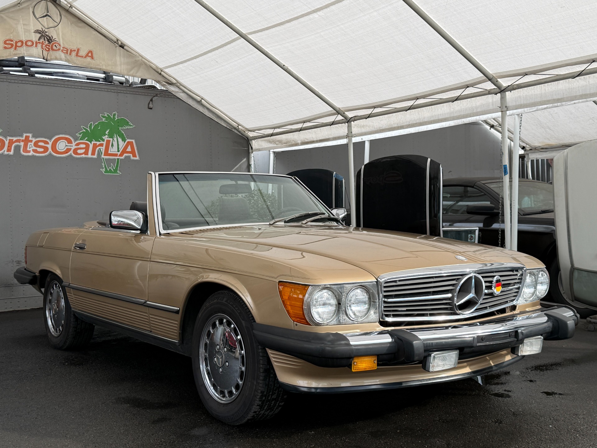 This is the desirable 560SL in Champaign Metallic paint 4730 and Leather Brazil Brown 273