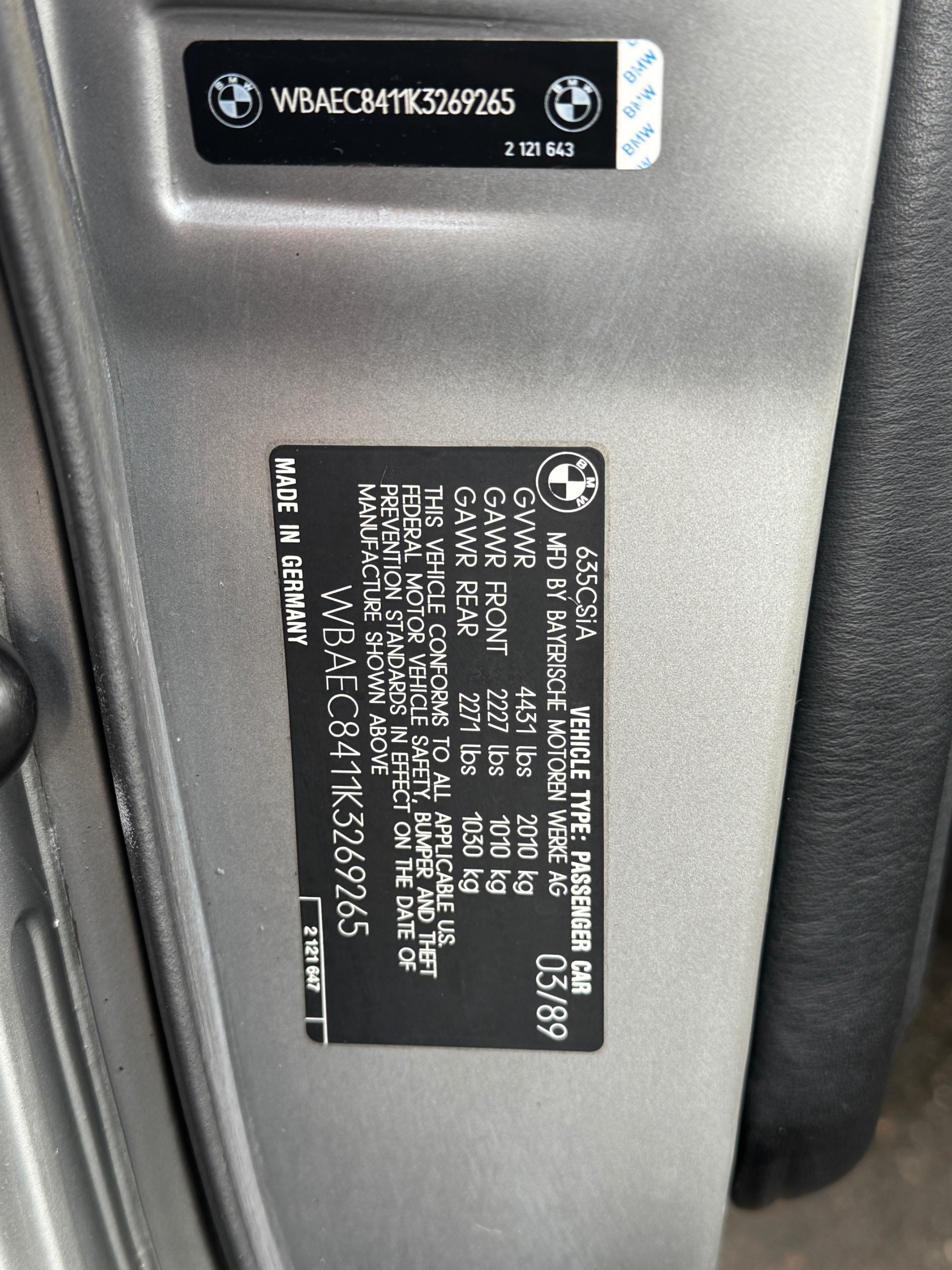 1989 BMW 6 Series 635CSi